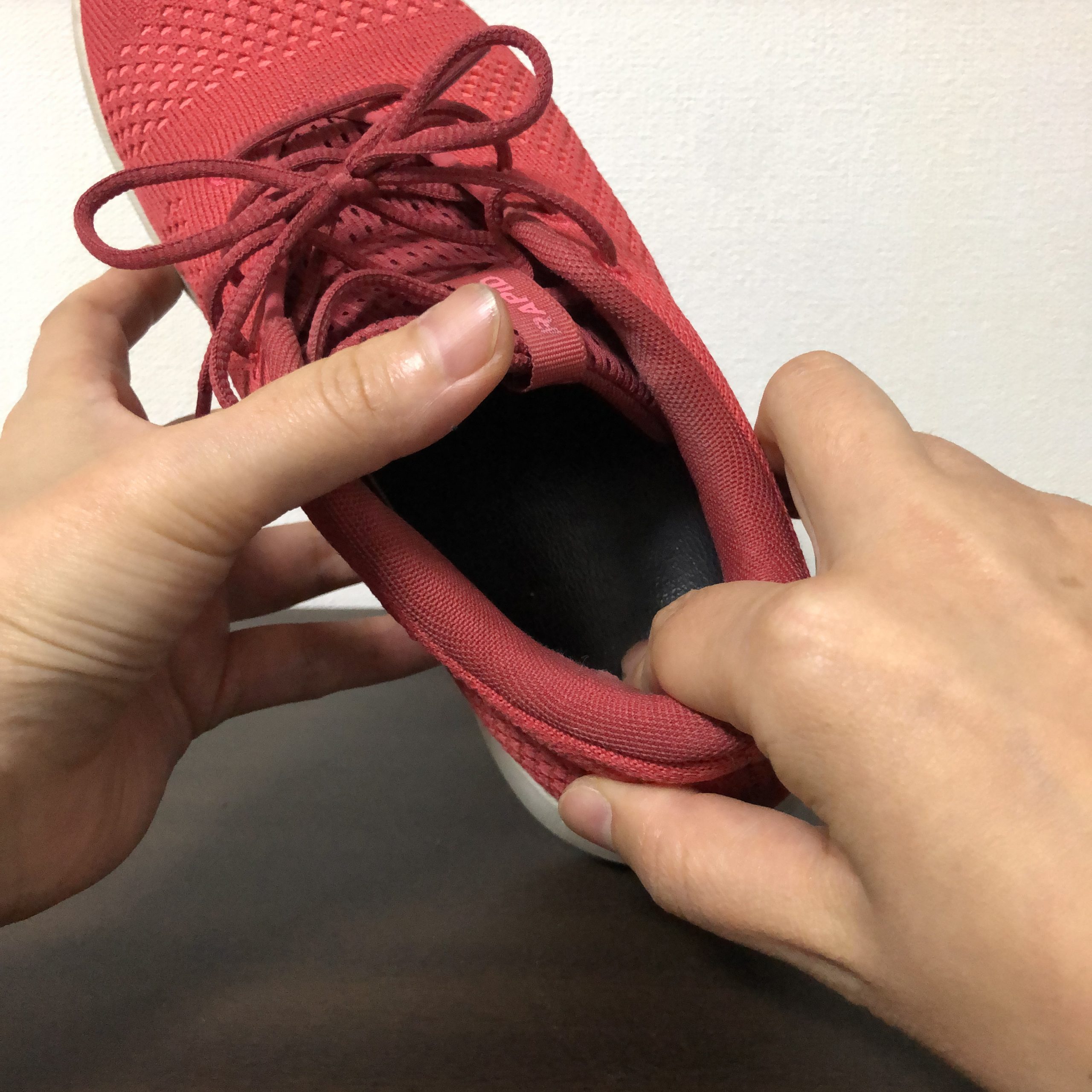 かかとを両方からホールドするのが【ヒールカウンター】になります。しっかりと芯が入っているものが理想的です。