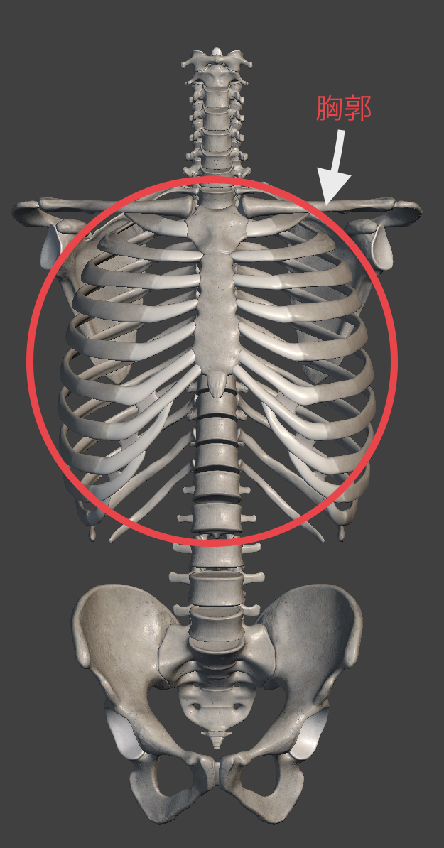 【胸郭】がありあます。(肋骨の部分をいいます。)