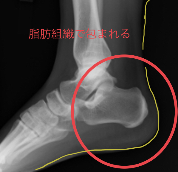 かかとの骨を包みこむ多くの面積を占めているのは脂肪です。