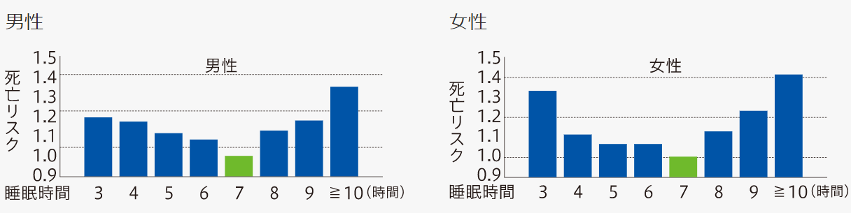 理由などは、まだ解明されていませんが、ホルモンバランスや睡眠時の呼吸などとの関連も示唆されています。睡眠は長くても短くてもいいわけではないという事です。