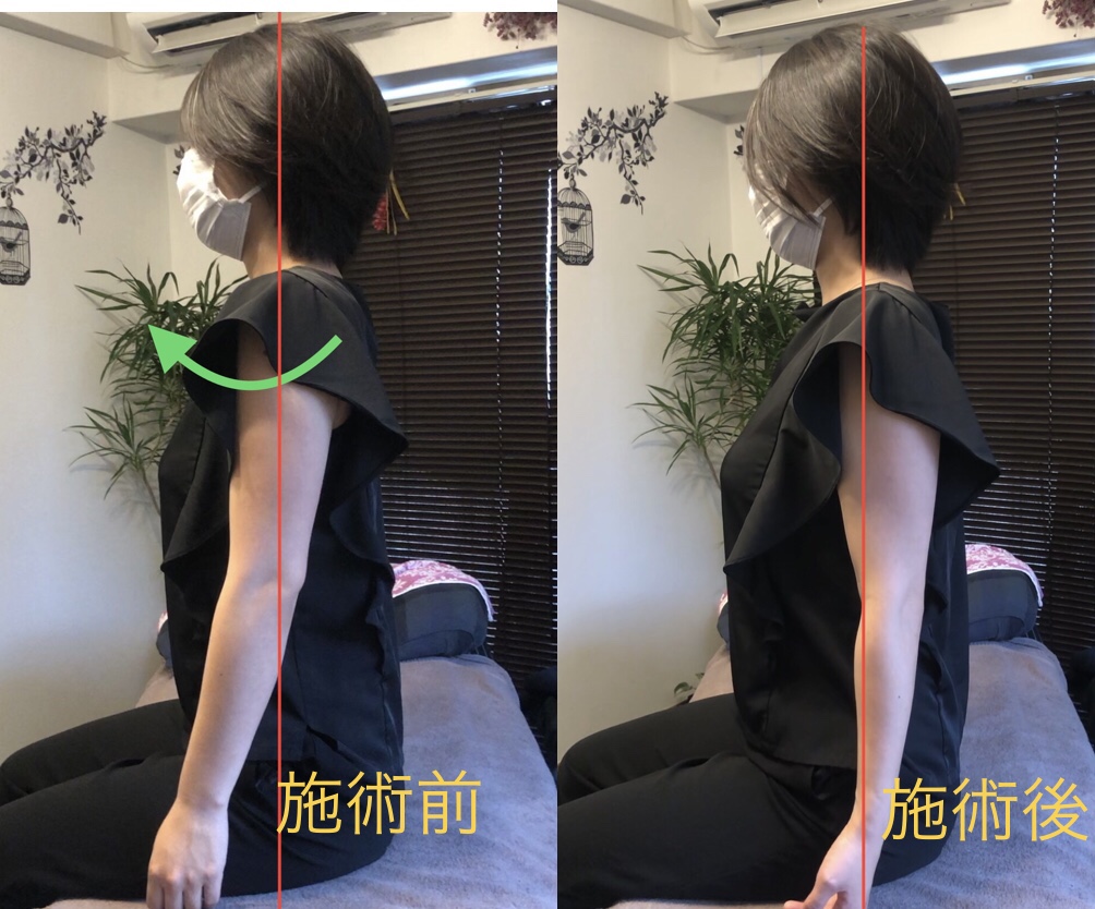 下の写真は施術前後でのクライアントさんの姿勢の変化です。