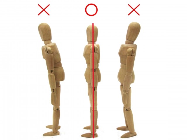 真っすぐな姿勢とは、横から耳・肩の中心・骨盤の中心・くるぶしを通る線になります。