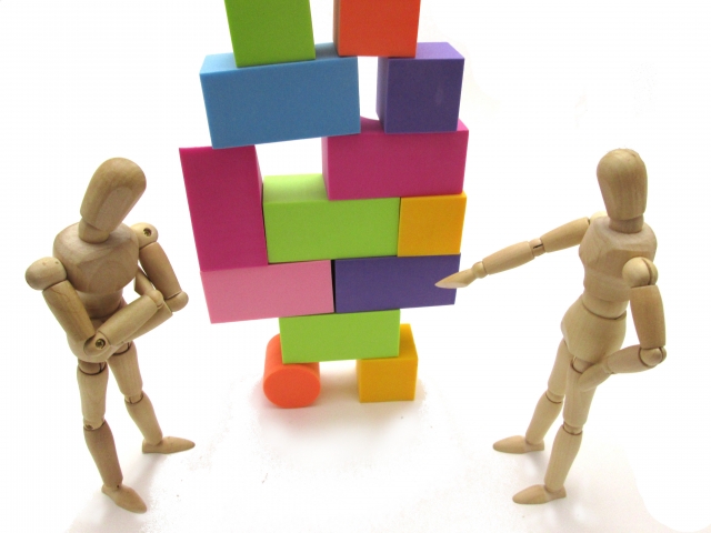 写真の様に、土台が不安定だとその上にのるものは崩れてきます。